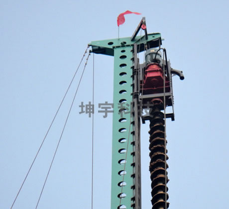 我公司研制生產的系列液壓步履式長螺旋鉆孔機是鉆孔灌注樁,鉆孔打入 預制樁的成孔設備。具有性能穩定可靠,使用維護方便,噪音低,無沖擊 ,振動小,無污染、可自裝、自卸、步履移動,運輸時上節主架縮回,折 放,動力頭無需拆卸等優點,節省了吊裝和拆裝的費用和麻煩,轉場方便 ,大小工程皆宜,該機性能優越,經濟實用,深受用戶的好評。