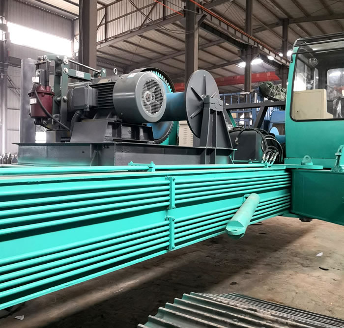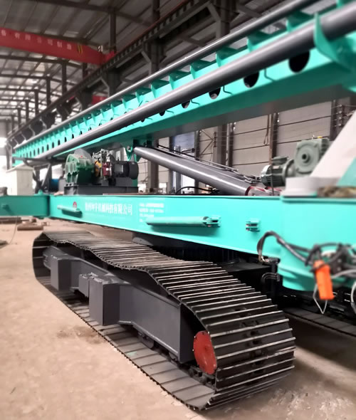 近年來,隨著樁機市場的不斷發(fā)展,對樁機的要求也是日新月異。為了滿足現(xiàn)場對樁機的快速短程轉場要求,我公司開發(fā)了新型液壓馬達驅動式履帶底盤樁機。該樁機在步履式樁機的基礎上改進發(fā)展而來,在繼承以下特點的基礎上又增加了新的功能特點: